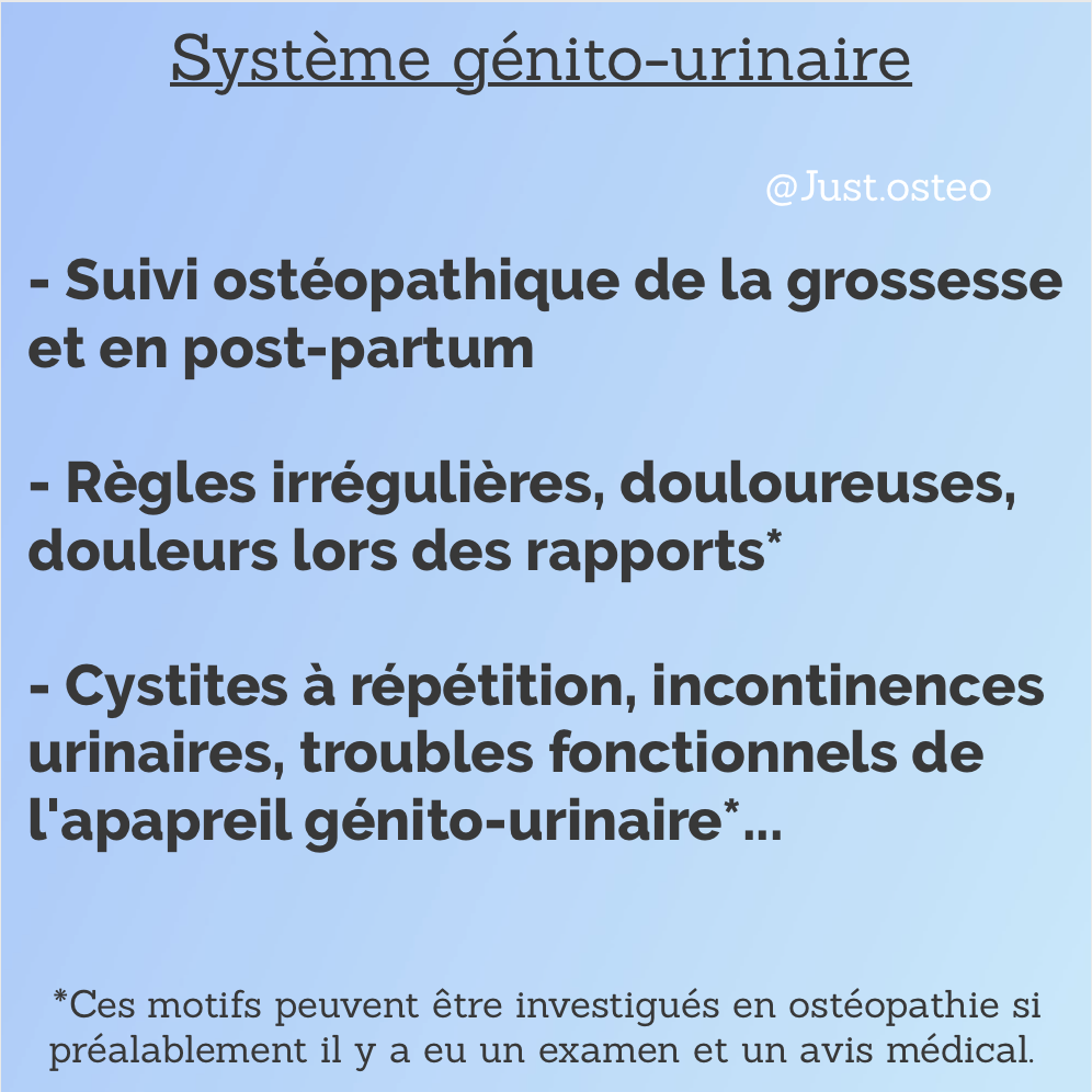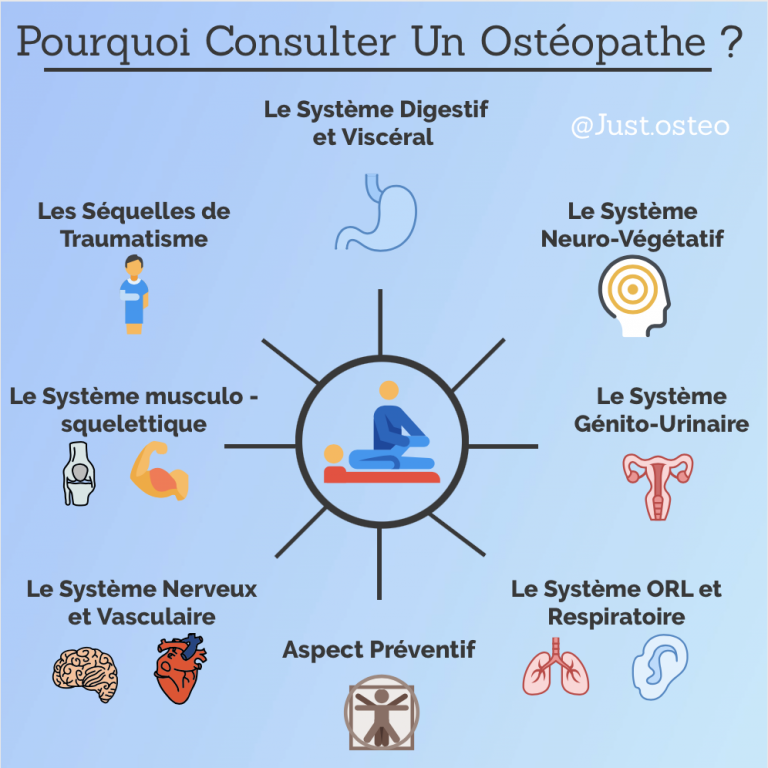 L'Ostéopathie est une médecine manuelle, qui vise à comprendre et traiter manuellement les troubles fonctionnels du patient à partir d'une analyse des différents systèmes du corps humain dans leur ensemble.