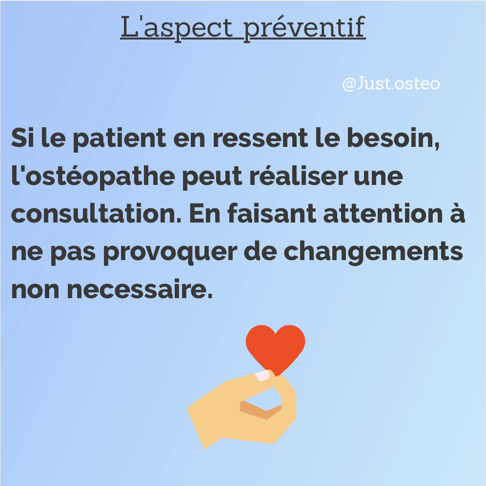En fin de séance, l’ostéopathe testera à nouveau avec vous les différents mouvements qui pouvaient provoquer les douleurs et vous donnera des conseils pour votre quotidien (étirement, positionnements, reprise du sport…).
